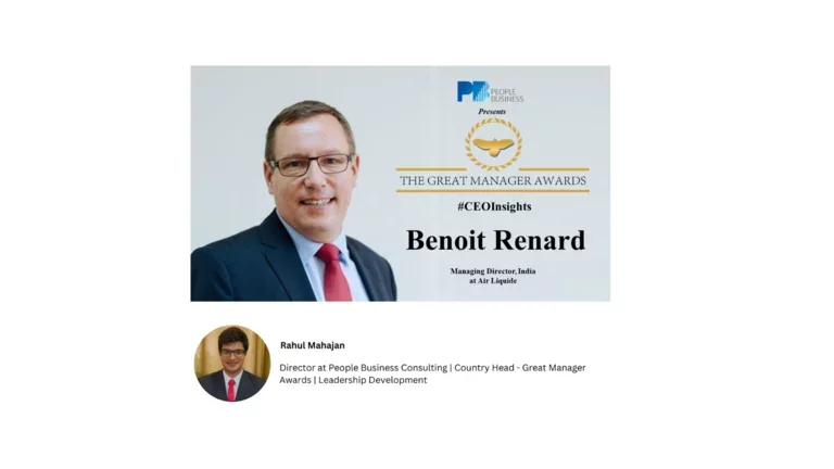 In the series of CEO Insights as part of the The Great Manager Awards by People Business Consulting Awards, Mr. Benoit RENARD, Managing Director, at Air Liquide India had a candid conversation with Mr. Rahul Mahajan, where he shared his views on leadership.